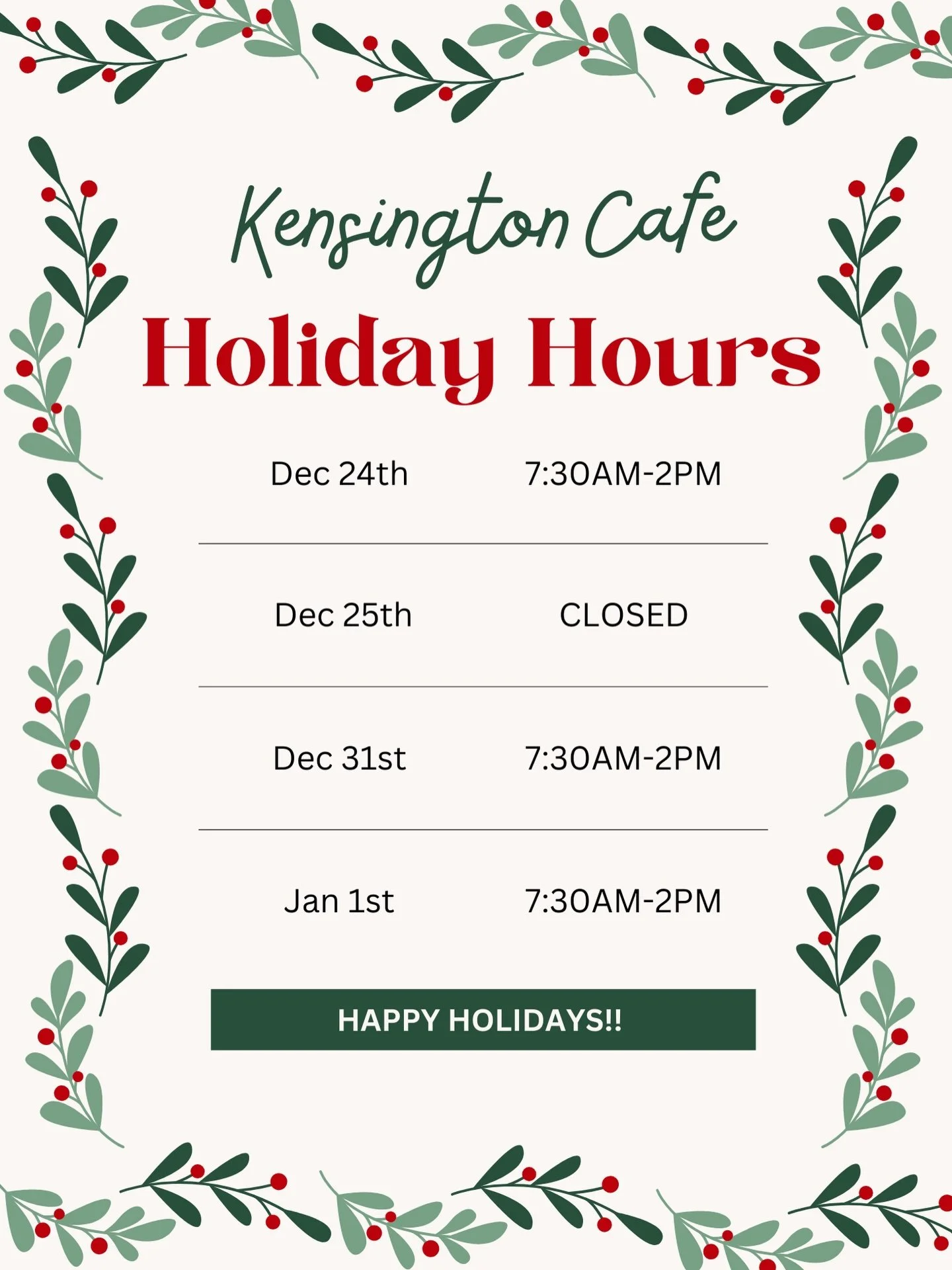 Whether youβre a local or just passing through, we invite you to explore all that Kensington has to offer, and of course, stop and visit us to relax, grab a bite and feel at home.